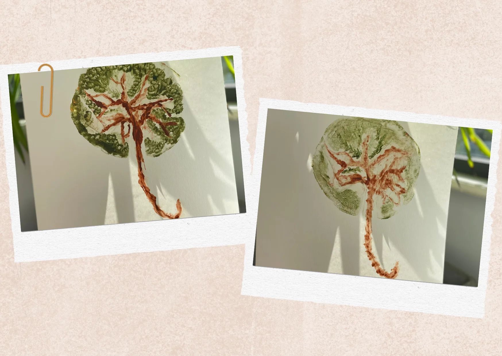 Een placenta print is een afdruk van jouw placenta op speciaal papier. Dit gebeurt met natuurlijke kleurstoffen of zonder inkt, waarbij enkel de afdruk van het bloed een organische en unieke vorm creëert. Elke print is anders en weerspiegelt de levensboom die jouw baby heeft gevoed.